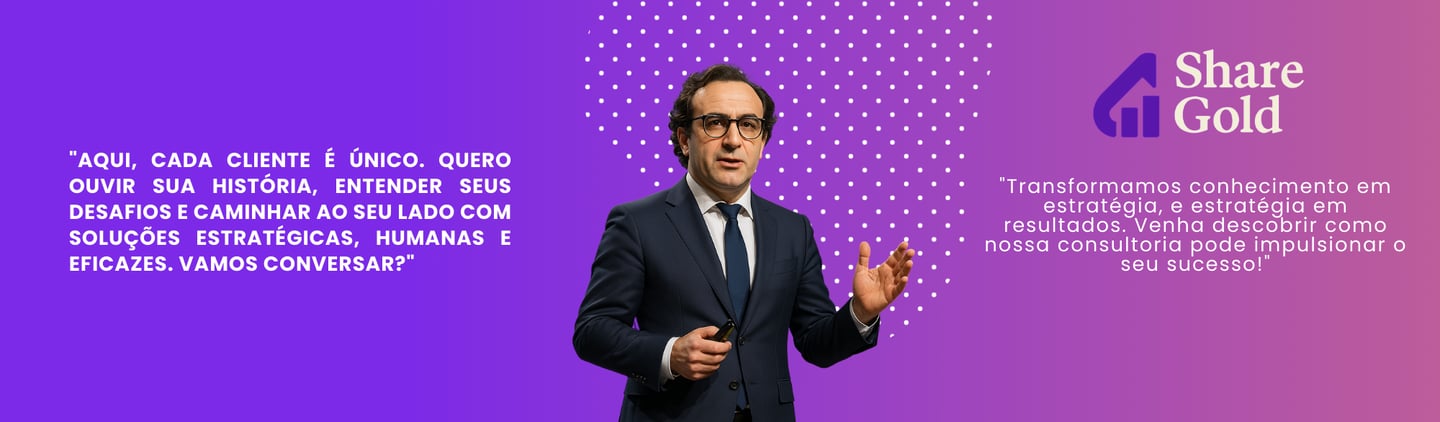 Com uma abordagem personalizada, humana e estratégica, unimos teoria e prática para transformar ideias em realizações. Se você busca apoio técnico, inteligência estratégica e desenvolvimento com propósito, a Share Gold Consultoria é a parceira certa para sua jornada.